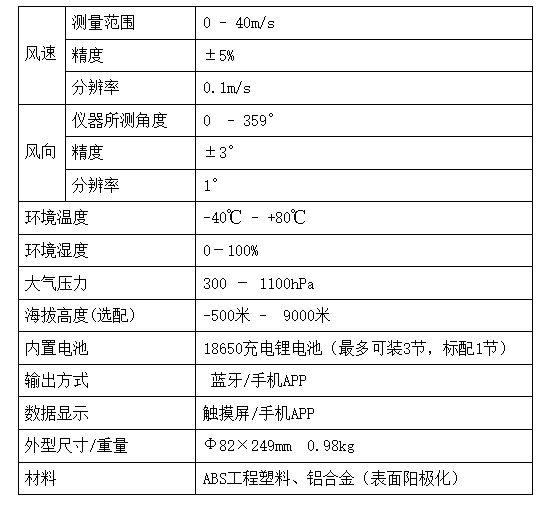 QH-CSSC手持式超声波气象站具有质量轻、坚固耐用的特点,没有任何移动部件,不需要维护和现场校准,能同时输出风速、风向、温度、湿度、大气压力。特殊设计的手柄,方便用户单手握把,重量仅0.98kg。内置蓝牙模块,可使用厂家提供的专用APP手机软件,在手机上实时接收检测数据,特别适合外场临检。